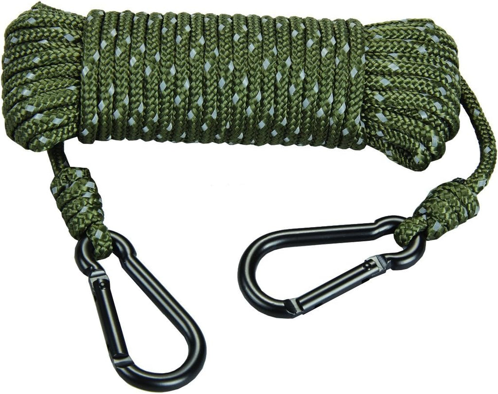 Whether you need to pull up your bow or let down your back pack, this treestand rope can get it done. With built in reflective material, it's easy to find should you drop it from your treestand. All of our bowhunting ladder stands have two of these attached, one on each side, for easy gear pull up and let down.